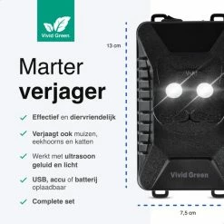 Produceert irritante voor mensen niet hoorbare hoge tonen die de marter niet als plezierig bevindt.