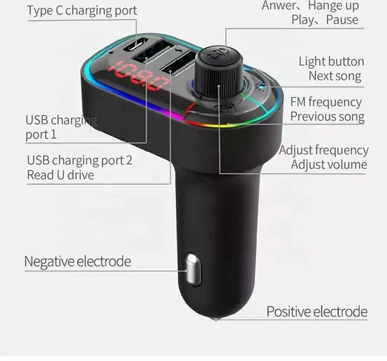 – Deze FM Transmitter beschikt verder ook over een USB-C poort, hiermee kunt u USB-C ondersteunde telefoons snel opladen.