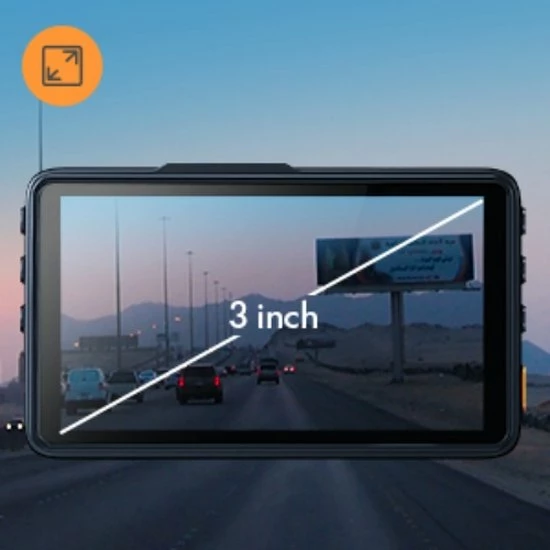 Het 3-inch scherm met hoge resolutie maakt het gemakkelijk om het bedieningsmenu van de dashcam te zien. En wanneer je de opgenomen video ter plekke wilt bekijken, zie je de opgenomen video duidelijk door het 3 inch grote scherm.