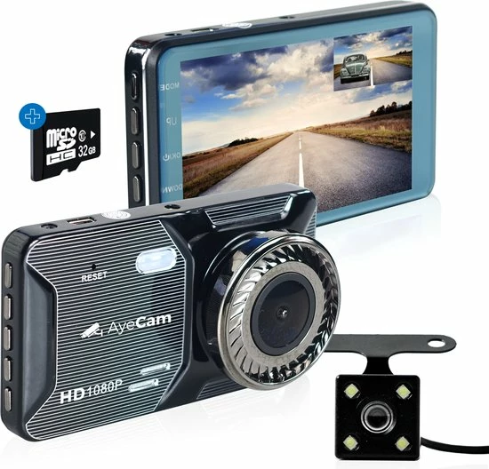 - Voor & Achter ? De AyeCam dashcam legt niet alleen de beelden van de voorkant vast maar ook die van de achterkant, door de meegeleverde achteruitcamera.