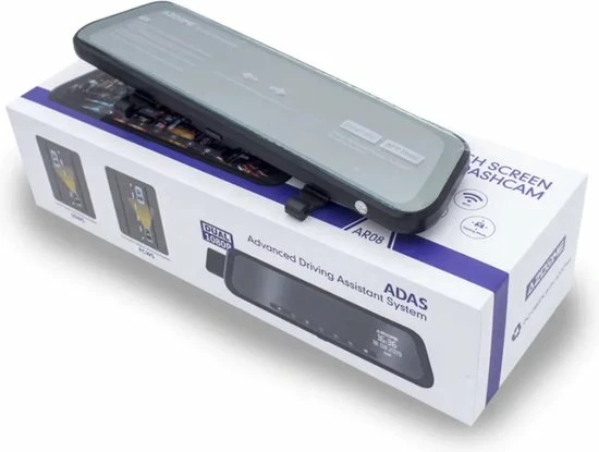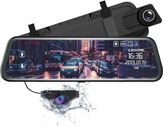 De AZDome AR08 Full Mirror is een high-end dashcam met een uniek spiegel of binnenspiegel design. Deze AZDome AR08 heeft een zeer groot 10 inch Touchscreen LCD geïntegreerd in de volledige spiegel dat in combinatie met de 1920*1080p achtercamera een digitale binnenspiegel vormt. Door het gebruik van de achtercamera kan het zicht via de spiegel tot 300% worden verbeterd, vooral in het donker en bij slechte weersomstandigheden. De AR08 heeft bovendien een parkeerstand, G-sensor en de optie om een GPS module aan te sluiten zodat coördinaten en snelheid worden bijgehouden.