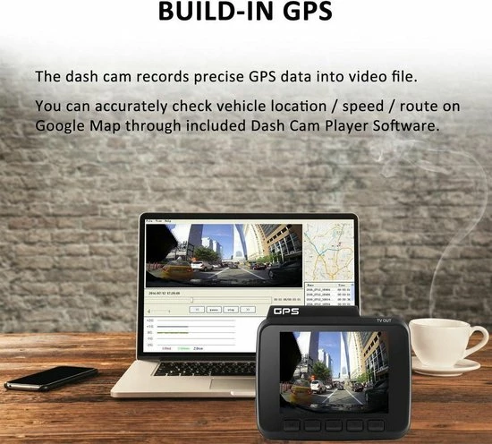 De AZDome GS63D heeft een ingebouwde GPS. Door deze GPS module kan de snelheid in beeld worden weergegeven, worden de co?rdinaten bijgehouden en kunt u de gereden route via Google Maps bekijken. Hiermee kunt u later met de meegeleverde software precies zien waar de auto is geweest.