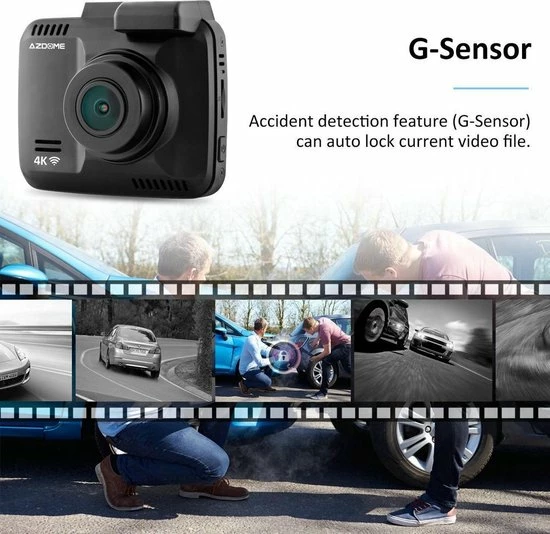 Daarnaast beschikt deze dashcam over een G sensor. Dit is een trillignssensor die in het geval van een aanrijding zorgt dat de huidige opname beveiligd wordt opgeslagen en niet wordt overschreven door de loop recording.