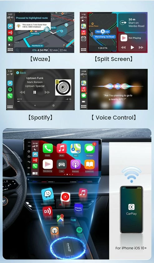 Vanaf nu kun jij apple carplay gebruiken in jouw auto. Ook is het mogelijk om draadloos gebruik te maken.