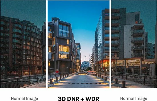3D DNR en WDR aanzienlijk verbeteren helderheid door het verminderen van ruis en aanpassen blootstelling balans wanneer opname in lage licht of high-contrast omgevingen. F1.8 grote diafragma trekt in meer licht te fleuren donkere scènes.