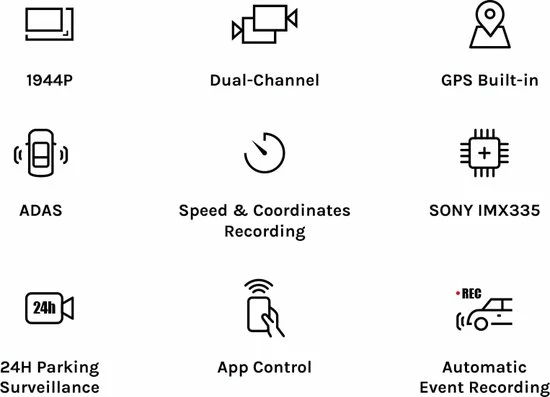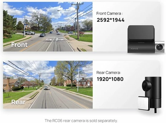 Compatibel met de RC06 achteruitrijcamera, de Pro Plus + kan bereiken dual-kanaals opname, het verstrekken van all-round bescherming zodat je kunt rijden met gemoedsrust. In dual-channel mode, de front camera onderhoudt resolutie tot 1944P, de achteruitrijcamera records in 1080P.