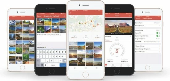 Photo Sharing: Photos, videos, and self-driving stories sharing; APP supports multiple social networks (Weibo, Wechat, QQ, Facebook, Twitter, Instagram and etc.)