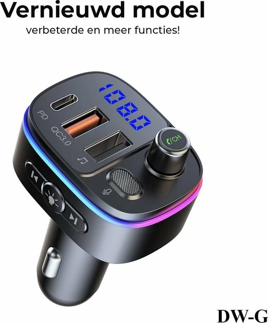 Deze FM transmitter/Carkit is een nieuw model vol met handige en vernieuwde opties.