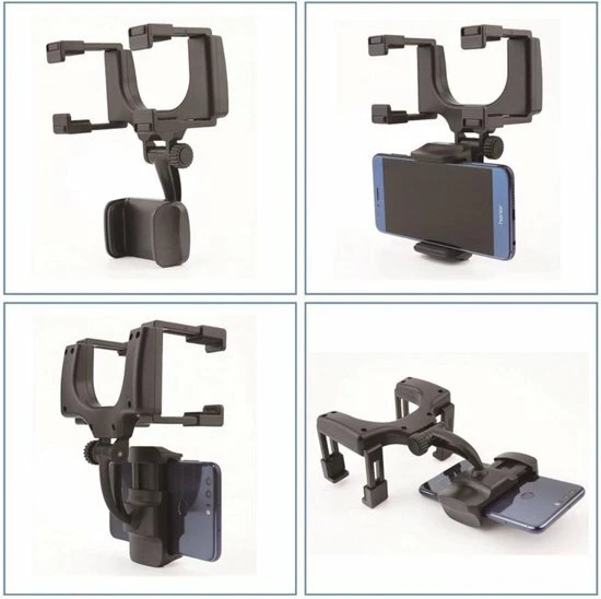 - Deze fraaie universele houder, gemaakt van duurzaam kunststof, wordt geklemd aan de binnenspiegel in de auto. De houder is geschikt voor iPhones en smartphones binnen met een breedte van 50 tot 90mm.