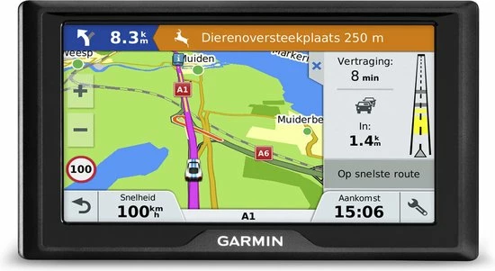 Om veiliger te rijden en uw omgevingsbewustzijn te vergroten, biedt Garmin DriveSmart waarschuwingen voor de bestuurder voor scherpe bochten, wijzigingen in de maximumsnelheid, spoorwegovergangen en dierenoversteekplaatsen. Bovendien zal het navigatietoestel u waarschuwen als u in de verkeerde rijrichting rijdt op een eenrichtingsweg en als u in de buurt bent van scholen of in schoolzones. Ontvang meldingen voor flitspalen in de buurt en zelfs vermoeidheidswaarschuwingen die aangeven dat u misschien even moet pauzeren nadat u meerdere uren hebt gereden.