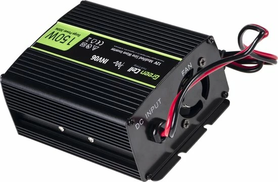 De Green Cell 150W/300W Spanningsomvormer Converter 12V naar de 230V Converter USB is perfect op plaatsen waar u geen directe toegang tot een stekker hebt. Het is ontworpen voor het hoogste gebruikerscomfort. De voorzijde van de omvormer is voorzien van een stopcontact dat is aangepast aan gebruikte stekkers in Engeland. Het heeft ook een USB-poort waarmee we onze smartphone, e-bookreader of elk ander apparaat dat via een USB-poort is aangesloten, kunnen opladen. De omvormer heeft een intelligente ventilator aan de achterkant om het apparaat af te koelen. De behuizing is gemaakt van duurzaam aluminium om hem bestand te maken tegen alle mechanische schade en schokken tijdens het reizen. Het materiaal dat bij de fabricage wordt gebruikt, maakt het apparaat licht van gewicht. Het hoogwaardige materiaal zorgt tegelijkertijd voor stilte en hoge prestaties. Op dit product zit 24 maanden garantie en zijn unieke eigenschappen.