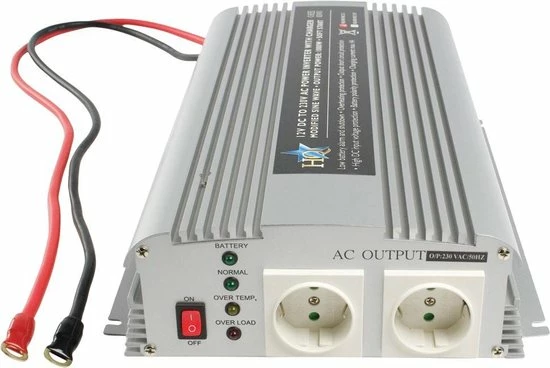 Deze omvormer is aan te sluiten op de 12V accu van auto of boot en vormt de 12V DC om naar 230V AC. Op deze manier is overal waar gewenst 230V apparatuur aan te sluiten! Deze omvormer kan een extra hoog piek uitgangsvermogen leveren.