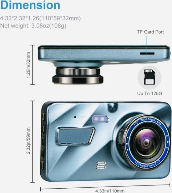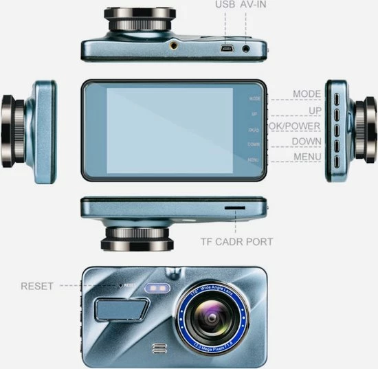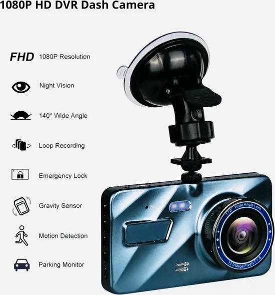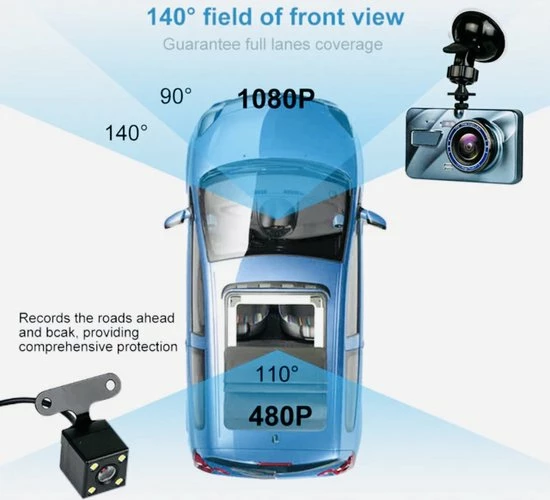 Achteruitrijcamera Dual Camera Video 1080P Full HD 3.6 “Cyclus Opname Dash Cam nachtzicht G-sensor