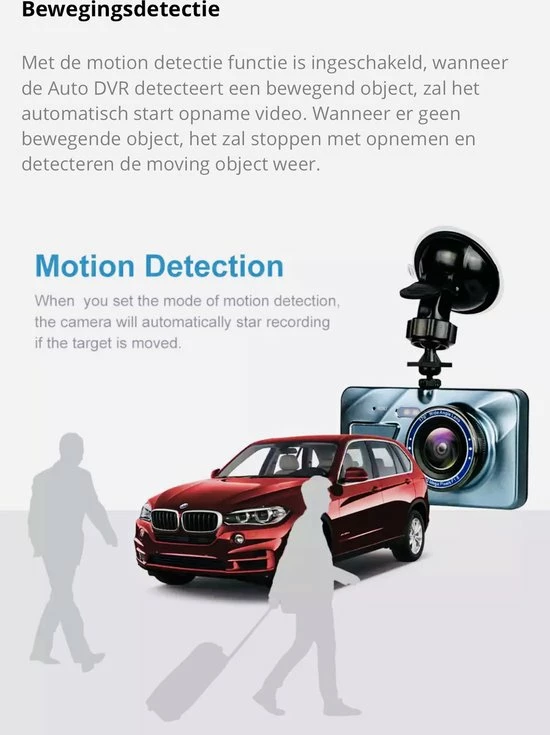 Met de motion detectie functie is ingeschakeld, wanneer de Auto DVR detecteert een bewegend object, zal het automatisch start opname video. Wanneer er geen bewegende object, het zal stoppen met opnemen en detecteren de moving object weer.