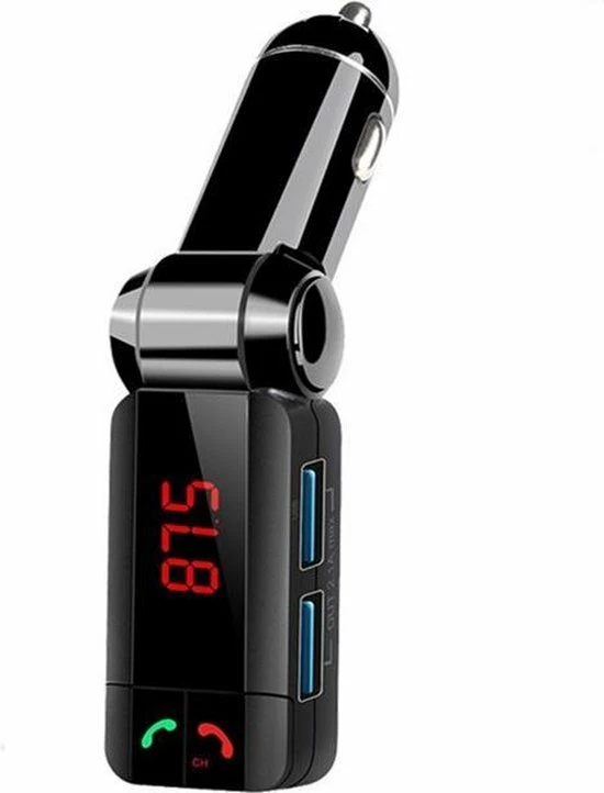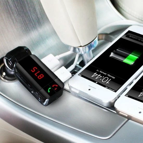 De FM Transmitter heeft ook twee ingebouwde usb-aansluitingen voor het opladen van je telefoon en tablet. Eén van deze usb-poorten ondersteunt bovendien audio-input. Je kunt ook een usb-stick met mp3-bestanden aansluiten op de usb-poort en deze afspelen via de autoradio.