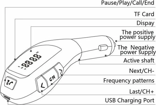 - Ondersteunt een externe TF-kaart, kan muziekbestanden afspelen in MP3/WMA-formaat. Geïntegreerde autolader met output 5V-1000mA, is beschikbaar voor het opladen van draagbare apparaten in de auto. 88