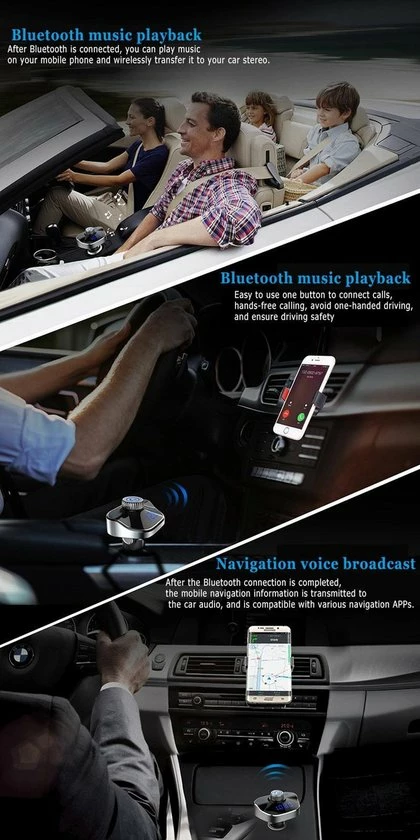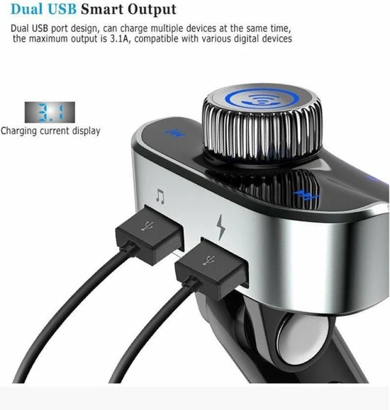 Door middel van de FM-transmitter kan jij je smartphone verbinden met een vrije FM-frequentie. Deze speel je op je radio af. Met de bluetooth 4.2 connectie van de carkit kan jij zo ongestoord naar je favoriete muziek luisteren. Het maakt de connectie van je smartphone naar radio gemakkelijk en precies, maar let er wel op dat je radio de meeste invloed heeft op je geluidskwaliteit. Naast bluetooth kan jij ook gebruiken van een u-disc om muziek af te spelen.