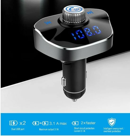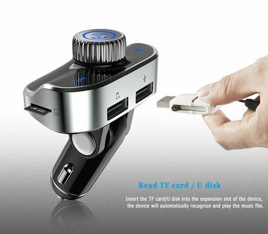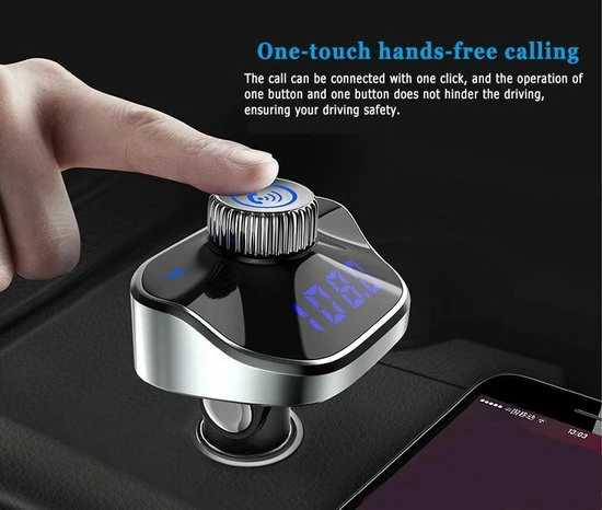 Handsfree bellen: met het nieuwe model van deze bluetooth FM transmitter was handsfree bellen nog nooit zo makkelijk en veilig geweest. De draaiknop bovenop heeft verschillende functies zoals: opnemen, oproep weigeren en terugbellen. Zo kan je je telefoontjes volledig bedienen met je ogen op de weg. Ook zit er een heldere ingebouwde microfoon op de carkit die ervoor zorgt dat je goed verstaanbaar bent.