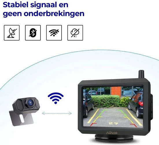 Ben jij opzoek naar een betrouwbare achteruitrijcamera die eenvoudig te installeren is? De Nince draadloze achteruitrijcamera zorgt ervoor dat jij in een handomdraai veilig de weg op kunt. Geen gedoe met allerlij draden, een eenvoudige installatie en een stabiele digitale verbinding tussen de camera en het scherm voor optimaal gebruik.
