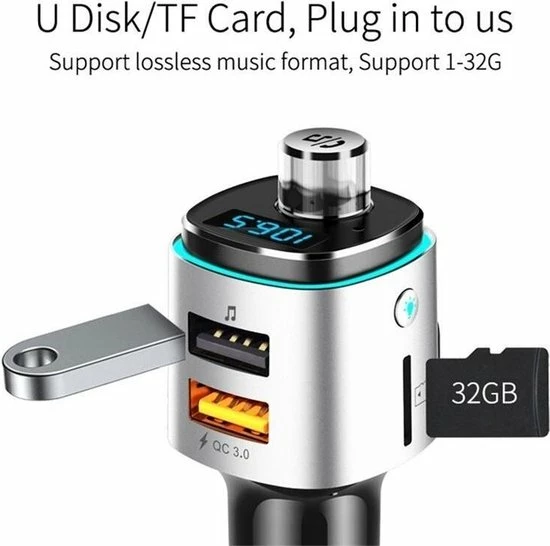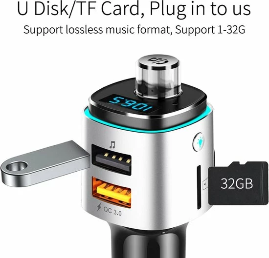 Dankzei de FM-transmitter kan jij je smartphone verbinden met een vrije FM-frequentie op de radio. De vrije zender wordt aangegeven op de beeldscherm van de carkit dus het enigste wat jij hoeft te doen is het vinden van de juiste FM zender. Door de snelste bluetooth 5.0 technologie connectie van de carkit kan jij zo ongestoord naar je favoriete muziek luisteren. Het belangrijkste van de Bluetooth 5.0 is de kracht, hierdoor heb je een snellere, kraakheldere ?n stabielere verbinding! Naast bluetooth kan jij ook gebruiken van een SD-kaart of u-disc om muziek af te spelen.