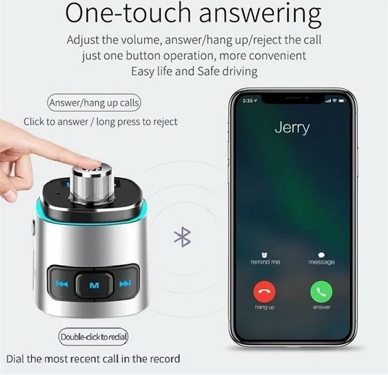 Met deze carKit kunt u gemakkelijk telefoongesprekken beantwoorden / afwijzen / weigeren / opnieuw bellen via de handsfree-functie. Wanneer het apparaat is gekoppeld of Bluetooth is verbonden, geeft de gesproken stem aan of dit apparaat wel of niet is verbonden.