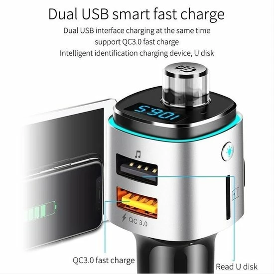 Heeft je auto geen bluetooth en wil jij graag muziek afspelen in de auto of handsfree kunnen bellen, dan is de carkit van Opline de beste oplossing! Je geniet van jouw favoriete muziek via de nieuwste Bluetooth 5.0 technologie. Is je mobiel leeg dan kun je via de QC 3.0 USB-poorten jouw apparaat wel tot 4 keer sneller op opladen. Sluit de transmitter eenvoudig aan via de (sigarettenaansteker poort) van de auto en genieten maar!