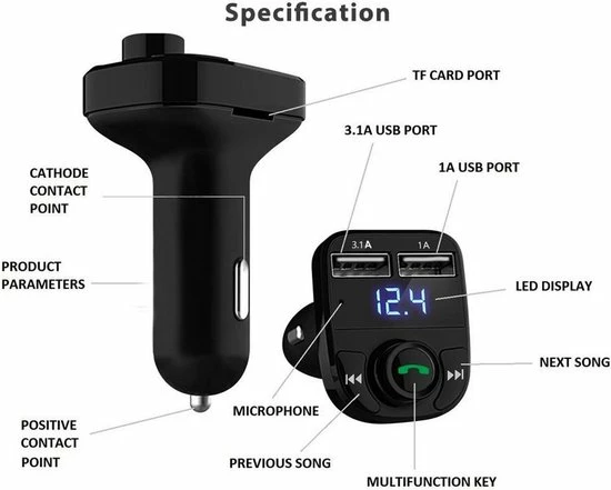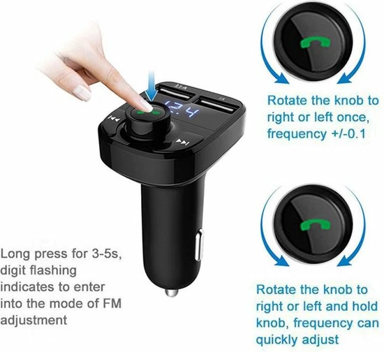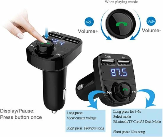 Bluetooth Handsfree Carkit Fm-zender MP3-speler Dual USB Charger Productbeschrijving: