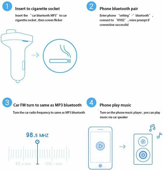 Zet de bluetooth van je telefoon aan, zoek de HY82 en maak er verbinding mee. Dan kun je muziek afspelen via bluetooth.