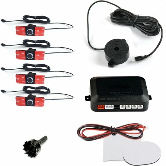 Deze set wordt compleet geleverd inclusief gatenboor en speaker (regelbaar volume), 4 zwarte sensoren (glanzend) en een Engelstalige inbouwhandleiding.