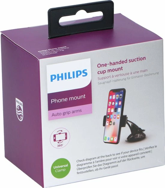 De Philips universele telefoonhouder plaats je middels een zuignap gemakkelijk op elk dashboard. Zorg ervoor dat het oppervlak waarop je de telefoonhouder bevestigt schoon en stofvrij is. Op die manier ben je er zeker van dat de telefoonhouder langere tijd blijft zitten en tijdens het rijden niet zomaar los laat.