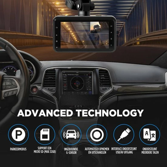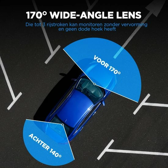 Met de dashcam van Qumax kun je tijdens het rijden zowel beelden van je omgeving aan de voor- als achterkant maken. Dankzij de Full HD-camera (1080P, 30 fps) is het bovendien mogelijk om haarscherpe beelden te maken. De dashcam is uitgerust met een hoogwaardig IPS-display waarop de beelden in hoog contrast en met een wijde kijkhoek (170?) worden weergegeven. Het menu is bovendien zeer gebruiksvriendelijk en kan op verschillende talen worden ingesteld, waaronder Nederlands en Engels.