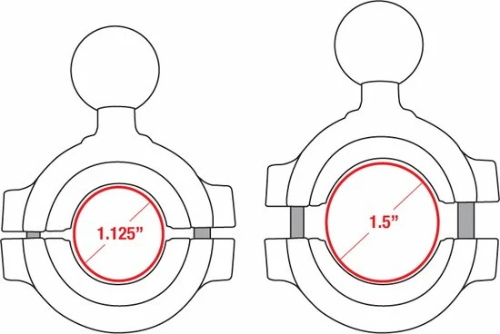 The RAM® Torque™ handlebar and rail mounting base has a 1” rubber ball and accommodates bars 1 1/8” to 1 1/2” in diameter. Sizing inserts are included to provide a snug fit and protection of the rail. The mount utilizes nylon-insert locknuts to prevent loosening in high vibration environments.