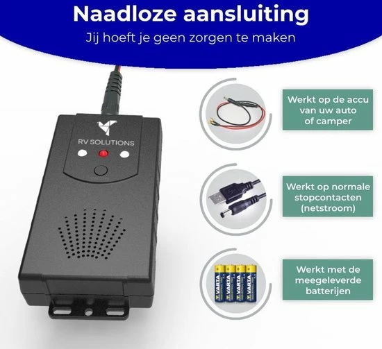 1 Sluit de marterverjager aan via de gewenste voeding die meegeleverd is (USB/batterijen/autobatterij)