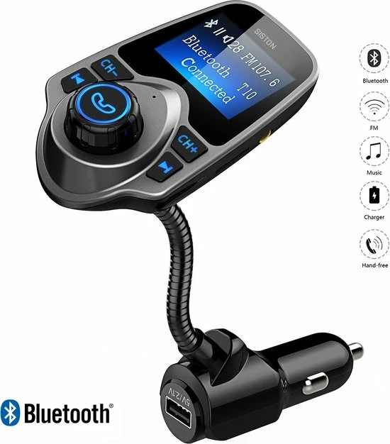 Met deze 5 in 1 Carkit wordt handsfree bellen gemakkelijk. Plug de 5 in 1 Draadloze Carkit in je 12 of 24V aansluiting, koppel het via Bluetooth (eenmalig) met je mobiele telefoon en stel vervolgens de zendfrequentie om geluid af te spelen over de luidsprekers in de auto.