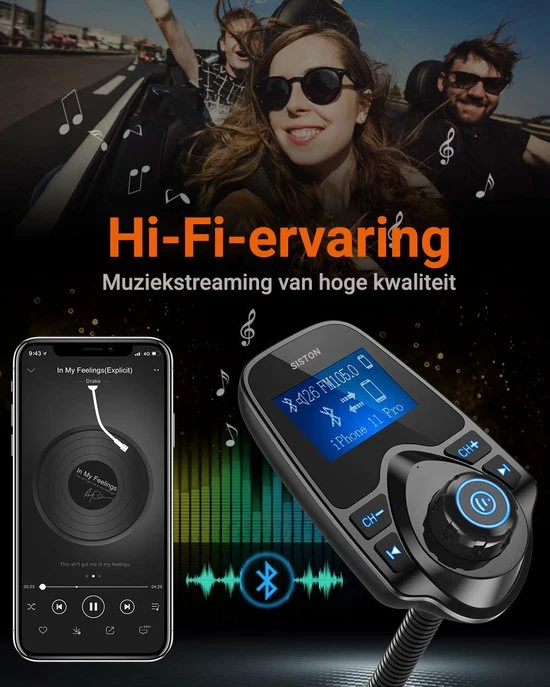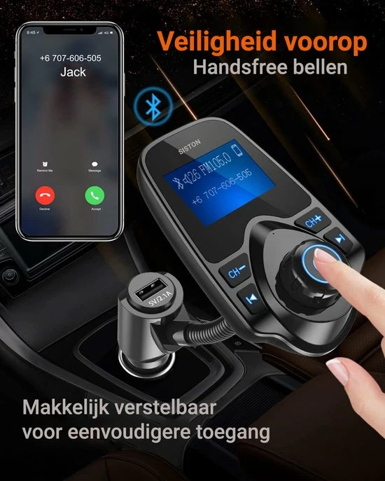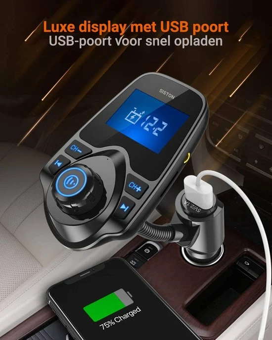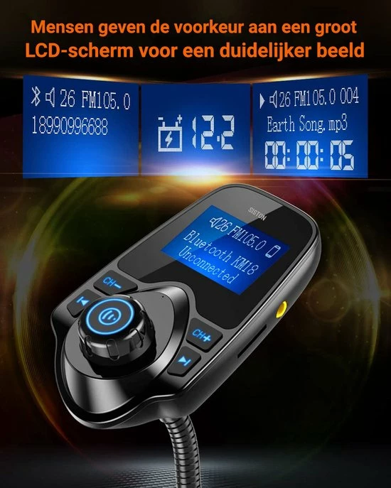Op het opvallende LCD scherm van de FM transmitter kunt u het nummer, volume aflezen.