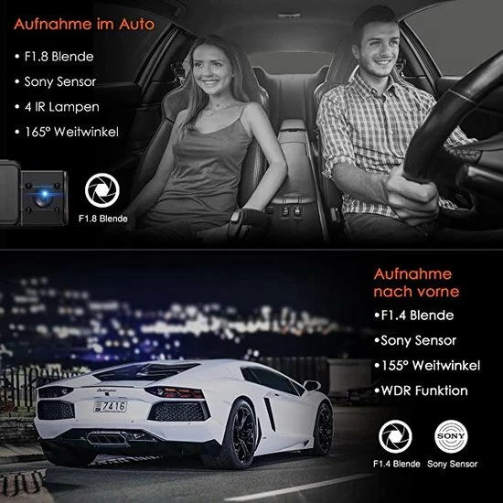 - Dual 1440P dashcams + 4K 2160P ?Gebaseerd op krachtige CPU, Vantrue N2S dashcam is de enige gelijktijdige opnames bij 1440P + 1440P en registreert haarscherpe video’s met 2x meer details dan 1080p in dubbele autocamera. 155? F1.4 Front Cam in WQH 4K 3840*2160P bij 25fps filmt alle rijsporen en vermindert blinde zones. 165? F1.8 achtercamera neemt duidelijke video van de bestuurdershuis. Binnen en buiten bieden betrouwbare bescherming en bewijsgevoel, gecorteerd voor veilig rijden.