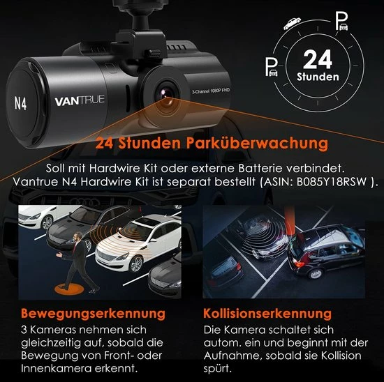 - ?24H Dual Camera Parking Mode with Audio? In de parkeermodus, zodra de camera aan de voorzijde of binnen beweging detecteert, moeten alle 3 de camera’s automatisch worden ingeschakeld en tegelijkertijd worden opgenomen. U kunt de kabelkit (ASIN: B08GX4S5ZS) gebruiken om stabiele stroom aan de camera te leveren voor onderspanningsbeveiliging en 24-uursbewaking. Het uitstekende geluid van de ingebouwde microfoon kan perfect bewijs leveren en u weghouden van conflicten.