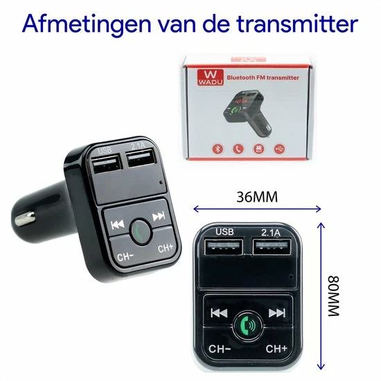 Deze transmitter bevat 2 usb poorten. Via deze usb poorten kunt u twee apparaten tegelijkertijd snel opladen!