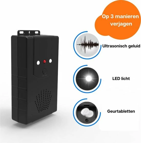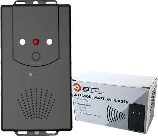 Deze marterverjager produceert luide en pulserende, ultrasone geluiden die niet of nauwelijks hoorbaar zijn voor het menselijk gehoor.