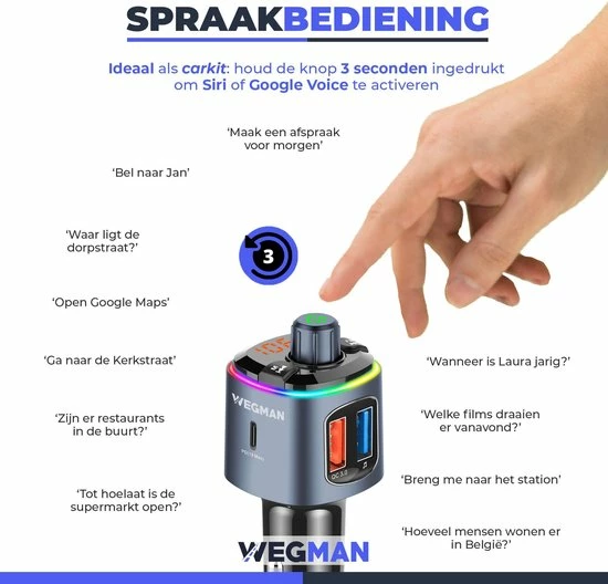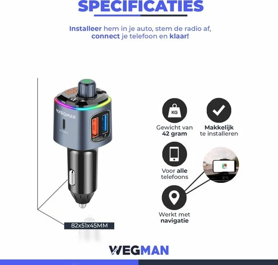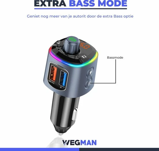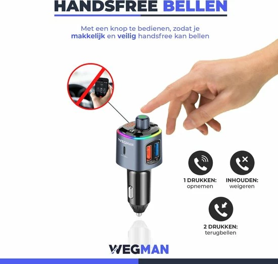Wegman denkt niet alleen aan jouw plezier in de auto, maar ook aan je veiligheid. Daarom kan je met je FM Transmitter naast muziek streamen ook oproepen beantwoorden. Je hoort de stem van je gesprekspartner door de luidsprekers van je auto en spreekt zelf door de microfoon van de FM Transmitter. Daarnaast laadt de FM Transmitter je smartphone ook nog eens razendsnel op dankzij de nieuwe 18W USB C Snellader. In amper 30 minuten laad je je smartphone tot wel 50% op!