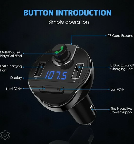 Met de bluetooth FM-transmitter carkit van Lovnix kan je overal je favoriete muziek beluisteren. De Bluetooth verbinding zorgt voor een draadloze verbinding waardoor je verlost bent van alle kabels in de auto. In deze FM-transmitters past ook een USB-stick of een SD-kaart waarmee je je muzieklijst kan afspelen. Bovendien zijn alle FM-transmitters compatible met allerlei smartphones,tablets, Ipods en mp3-spelers